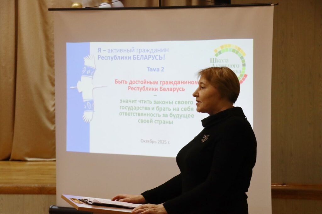 23 октября в рамках информационно — образовательного проекта «ШАГ» для учащихся 8-11 классов прошла диалоговая площадка по теме «Быть достойным гражданином Республики Беларусь — значит чтить законы своего государства и брать на себя ответственность за будущее своей страны». В мероприятии приняли участие председатель Кореличского районного Совета депутатовГаврош А.И. и депутат Кореличского районного Совета депутатов по Кореличскому округу №4, начальник Кореличского РОЧС Стодольник Д.А..В ходе реализации ШАГа 1 учащиеся совместно с модератором Кулик С.Н., классным руководителем 9 «Б» класса, и гостями актуализировали знания о Конституции Республики Беларусь, Президенте Республики Беларусь, Всебелорусском народном собрании, ветвях государственной власти, государственных наградах и премиях.Во время проведения ШАГа 2 гости охотно отвечали на подготовленные учащимися вопросы.В завершении встречи Алексей Иванович и Денис Александрович отметили лучшие вопросы и вручили медали «Лучший вопрос информационно- образовательного проекта «ШАГ» учащейся 9 «А» класса Новик Марии и учащемуся 10 класса Починчику Станиславу. Навигация по записям 25 октября стартует акция «За безопасность вместе» Учащиеся и педагоги приняли участие в республиканском субботнике