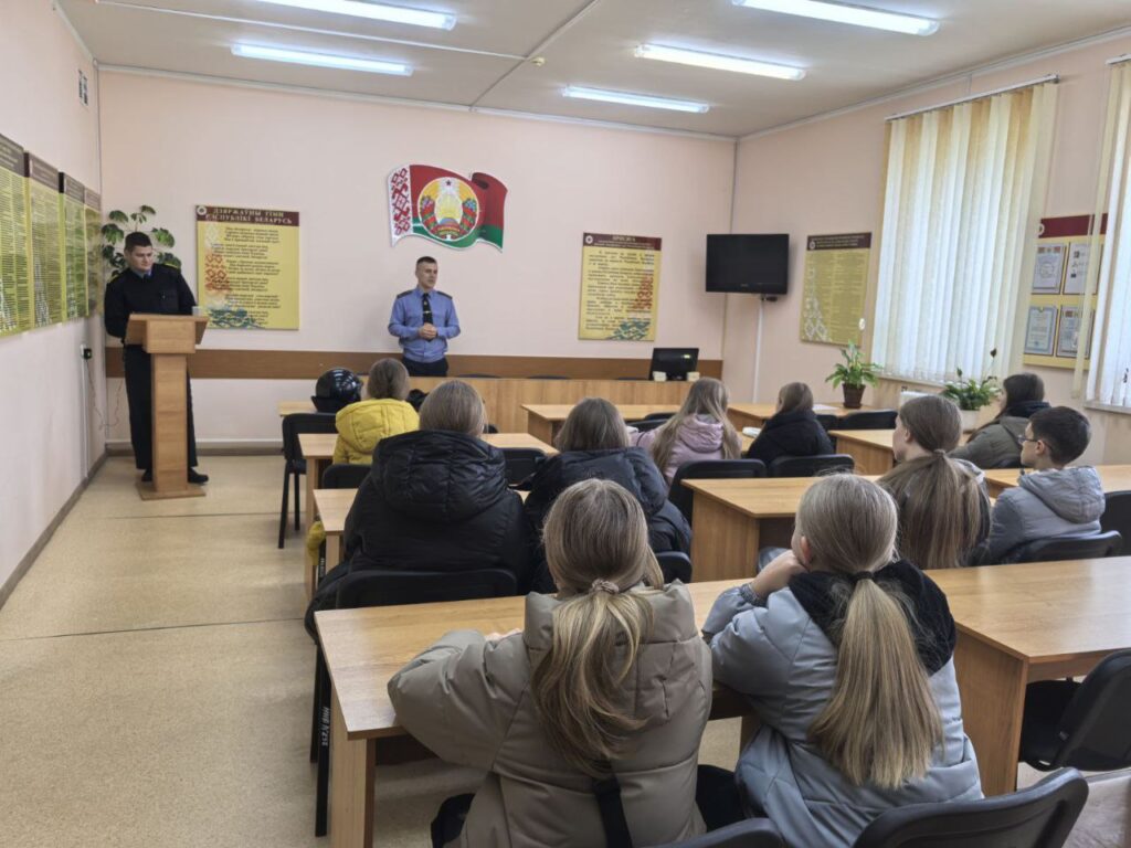4 ноября учащиеся 5 — 8 классов отправились на экскурсию в Кореличский отдел Департамента охраны. Перед сотрудниками этой организации стоит непростая задача оберегать мир и покой нашего городка. Целью экскурсии было донести до учащихся всю важность данной профессии.