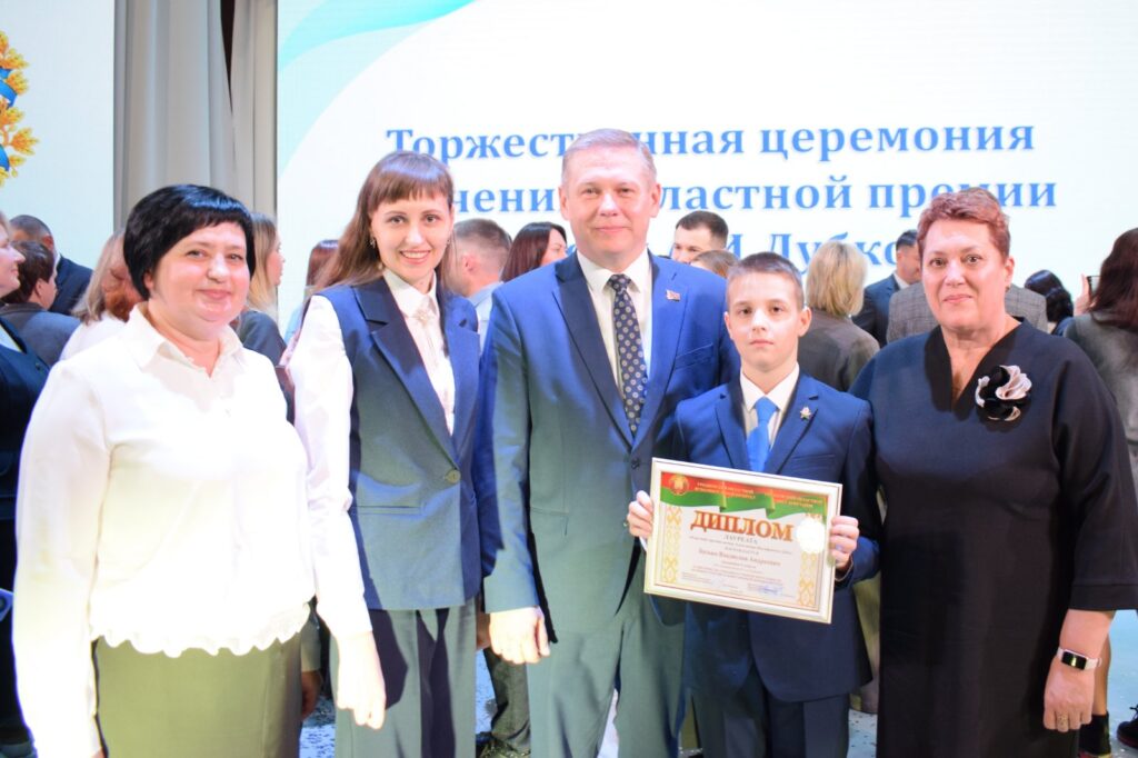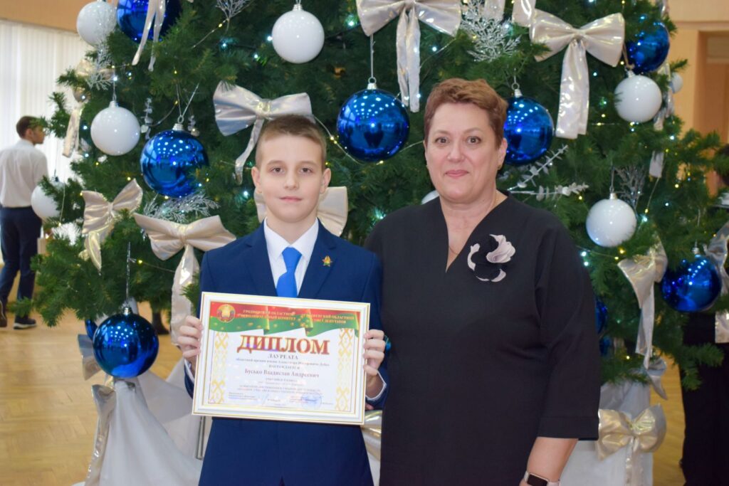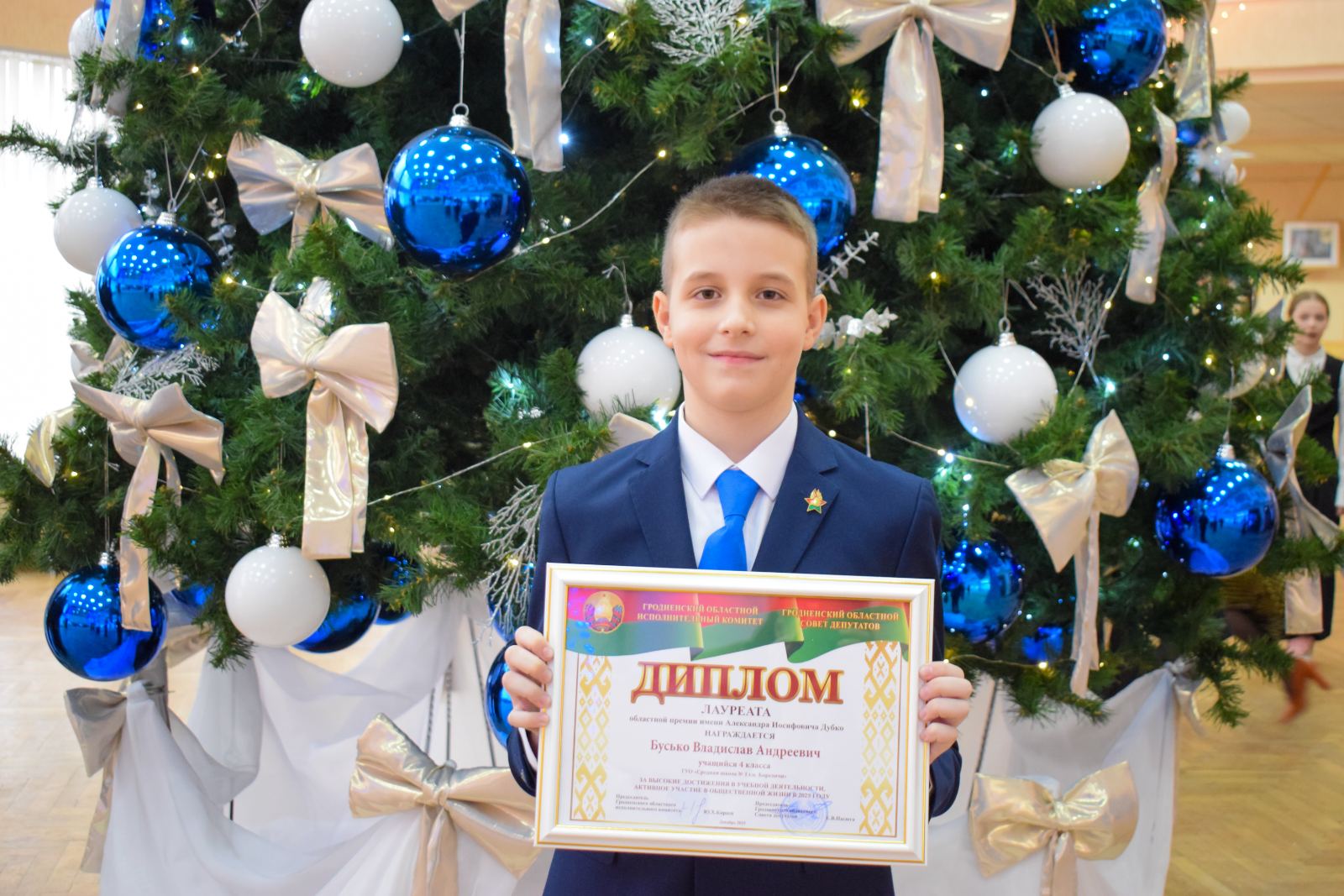 17 декабря в Гродненском областном Дворце творчества детей и молодежи состоялась торжественная церемония вручения премии имени Героя Беларуси А.И. Дубко одаренным учащимся и студентам региона, добившимся наиболее высоких результатов в интеллектуальной и творческой деятельности, спорте и профессиональном мастерстве. Среди 34 стипендиатов учащийся 4 «Б» класса Бусько Владислав – победитель областного конкурса «Память в граните» в рамках экскурсионно-познавательного проекта «С миру по нитке», победитель областного этапа и участник республиканской выставки-конкурса детского творчества «АрхНовация-2024», победитель республиканского конкурса «Дорогами воинской славы» в рамках республиканской героико-патриотической акции «Великой Победе – 80!». Навигация по записям Учащиеся приняли участие в благотворительной акции «Мандаринки добра» График проведения новогодних утренников