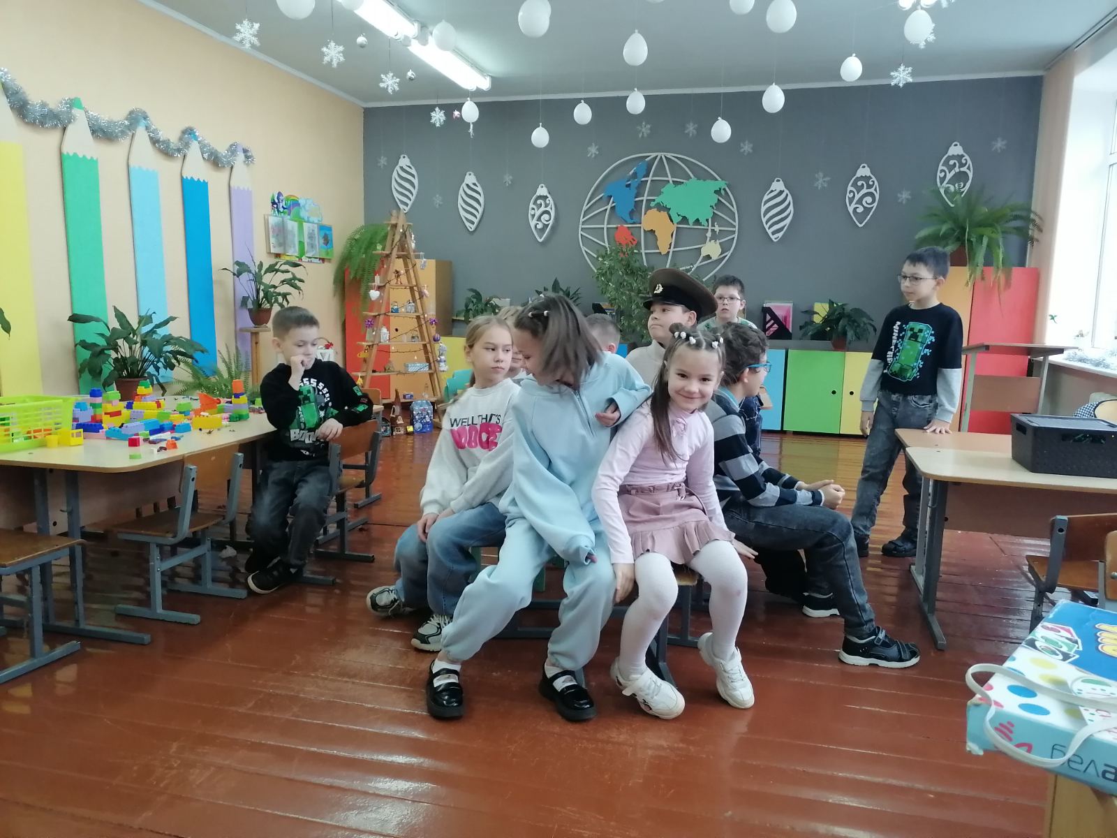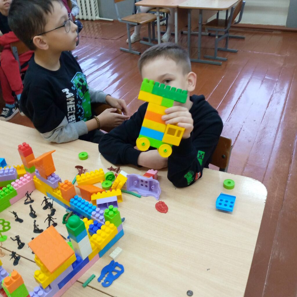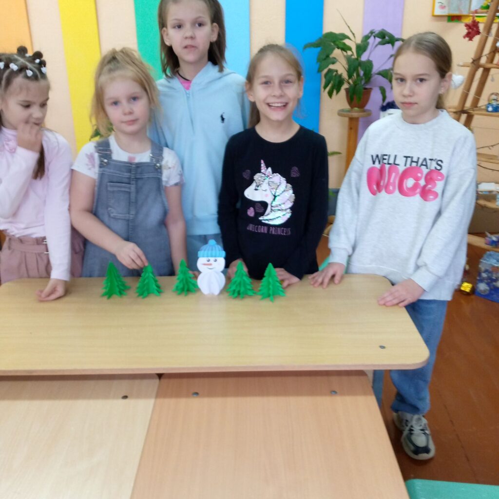 Затем работали в центрах — конструкторский, поделки из бумаги, разгадывание сказок. Потом был час психолога. Прошла психологическая игра «Экран настроения».