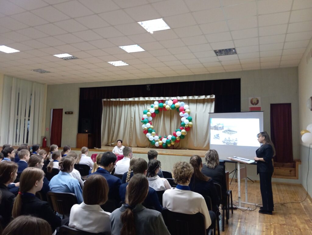Руководитель по ВПВ Кривицкая Людмила Ивановна рассказала о деятельности военно- патриотического клуба «Правнуки Победы», который был открыт на базе учреждения образования в 2024 году на основании Указа Президента Республики Беларусь №160 «О развитии военно — патриотических клубов». В ходе занятий воспитанники клуба развивают активную гражданскую позицию, повышают мотивацию к поступлению в Академию Министерства внутренних дел Республики Беларусь и другие учреждения МВД.