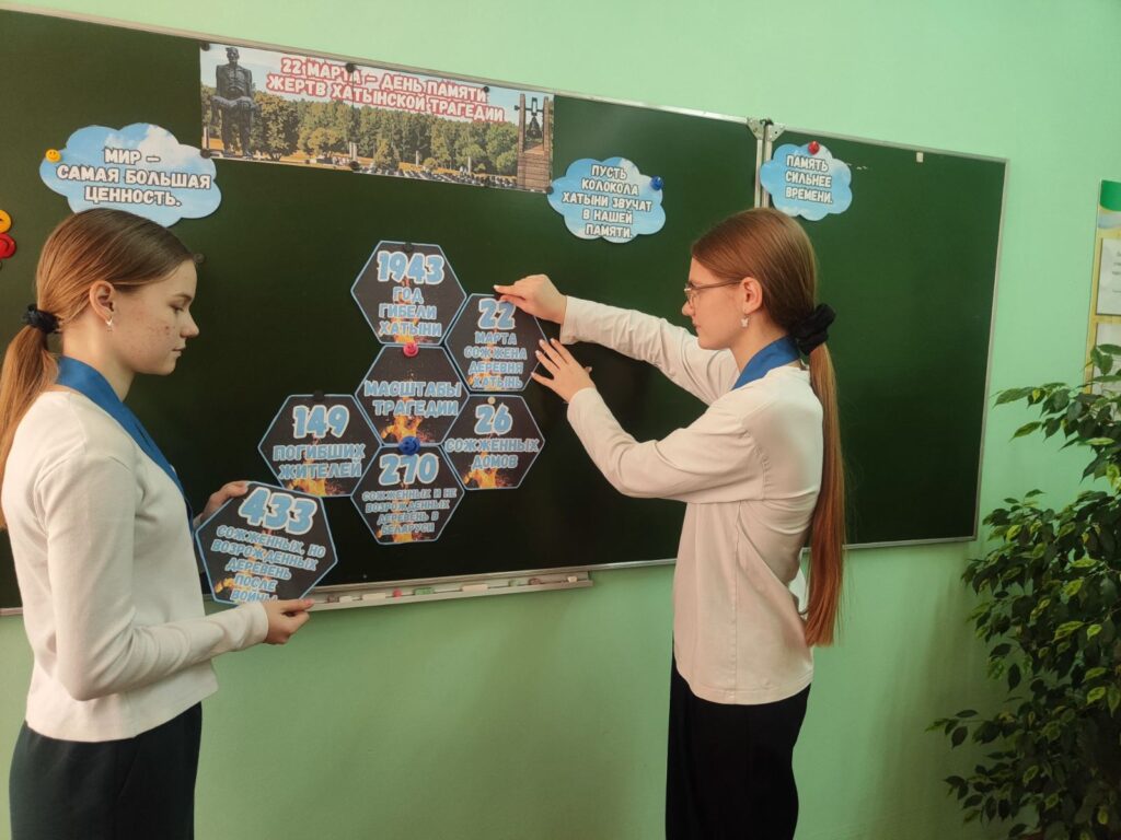 С целью формирования исторической памяти учащихся на основе осмысления ими фактов геноцида белорусского народа в годы Великой Отечественной войны, трагических событий в д.Хатынь 19 марта в ГУО «Средняя школа №1 г п.Кореличи» проведен единый урок, посвященный трагедии в д.Хатынь.Погружаясь в скорбные факты геноцида белорусского народа в годы Великой Отечественной войны, учащиеся прошли путь от простого запоминания дат к осмыслению боли и ужаса, которые фашизм принес на мирную землю. На примере сожжённой деревни, ставшей символом тысяч жертв, урок учил главному: нет оправдания насилию, нет прощения войне. Осознавая хрупкость мира через призму прошлых страданий, учащиеся убедились в мысли, чтобы не допустить войны и сохранить мир, мы должны помнить о страшных событиях военных лет и стремиться сделать все, чтобы они не повторились. Навигация по записям Для учащихся 3 «Б» класса сотрудники Беларусбанка провели экскурсию «Где живут деньги? « В рамках Недели финансовой грамотности состоялась встреча с представителями Белгосстраха